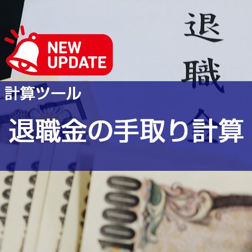 【計算ツール】「退職金の手取りシミュレーション」の機能追加について 公開日:2026年2月17日 計算ツール 退職金の額と勤務年数から、税額と手取額を計算するシミュレーションツールがアップデートされました。 ぜひご活用ください。 【今回のアップデート内容】 短期退職手当への対応 ・5年未満の勤務年数の場合に、短期退職手当とし […] 続きを読む